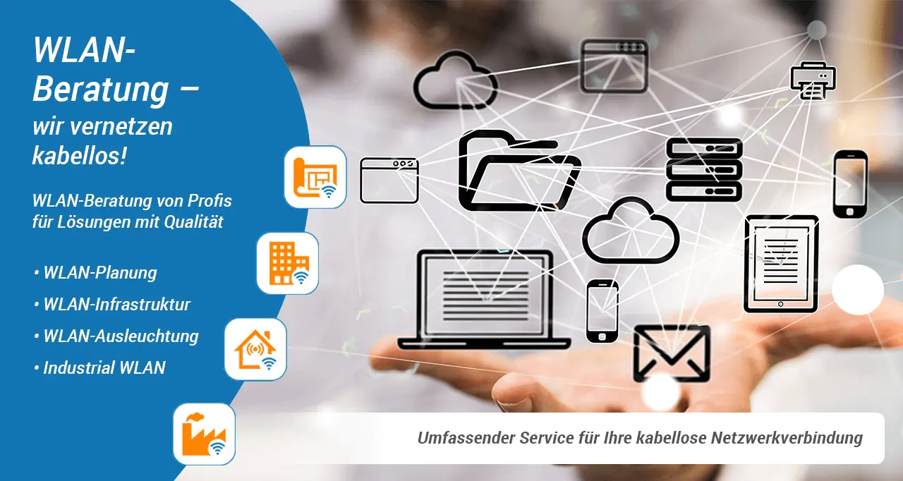 In qualità di società di sistemi IT competente ed esperta, vi offriamo un'ampia gamma di servizi WLAN. Aiutiamo la vostra infrastruttura a realizzare un'infrastruttura WLAN veloce, sicura e, soprattutto, stabile. Gettiamo le basi con una pianificazione WLAN professionale - o illuminazione WLAN - e completiamo la nostra offerta con componenti di alta qualità e la loro messa in funzione. Che si tratti di industrie, uffici, scuole o ospedali, abbiamo il piano per la vostra WLAN!